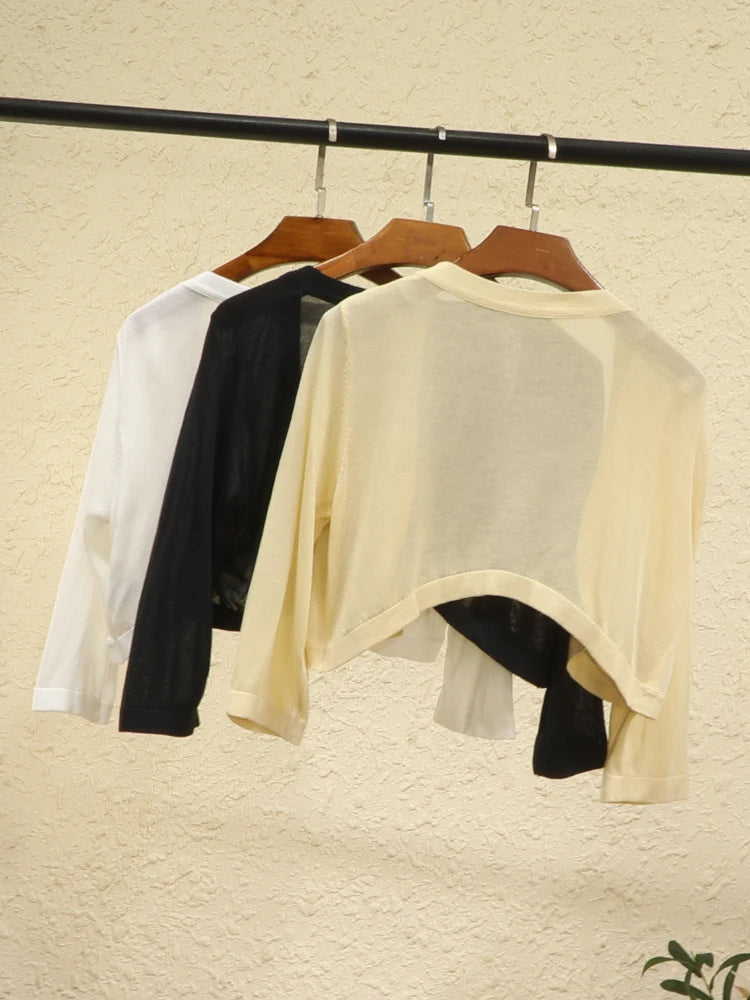 Summer Cardigan Women Cropped Korean Fashion Style Female Black Women's Coat Clothing V-neck Ladies Sweater Outerwear Cute Basic