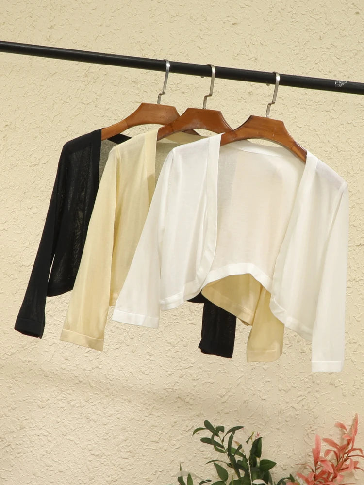 Ultra-thin and versatile, suitable for work, travel, commuting, and leisure. A classic that can be worn for a long time! Using natural cotton and nylon ice silk, the fabric is soft, cool and silky! Great for tank tops, dresses, T-shirts Knitted cardigan and pencil pants, this is the best way to cover the flesh in spring and summer In spring and summer, a T-shirt is too cold, and an extra coat is too hot? Well, a thin knitted sweater is just right。
